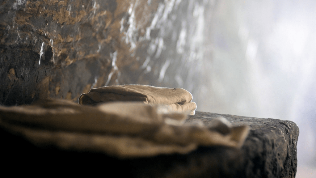 The second more pragmatic piece of evidence is the empty tomb and the head and body cloths lying undisturbed, but not enclosing a body – as seen by Peter and John, after Mary Magdalene had been greeted by Jesus.