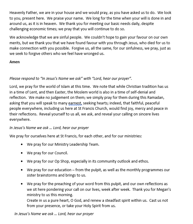 [Editor: Megan has asked that the intercessory prayer from the Lenten service at which she delivered this reflection accompany this post. The script of that prayer follows …]